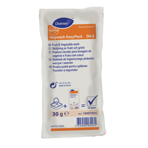 Suma Vegwash EasyPack D4.6 is a concentrated powder in sachet for hygienic wash of salad, tomatoes and other vegetables. The product is a chlorinated powder very effective for hygienic washing of vegetables.
