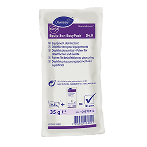 Chlorinated sanitizing powder for hard surfaces, equipment and utensils, soft serve and shake machines. Suma Equip San EasyPack D4.9 is a concentrated powder, very effective as a disinfectant for use on all food and non-food contact surfaces that require disinfection.