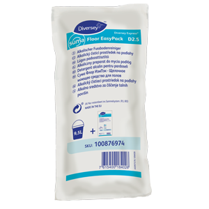 Suma Floor EasyPack D2.5 is a highly concentrated, low foaming heavy-duty cleaner for water-resistant hard floors suitable for mopping applications as well as for use in scrubber driers.