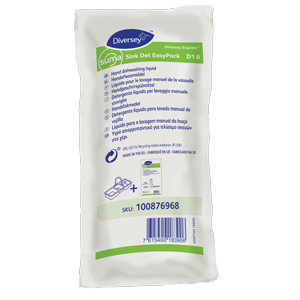 Suma Sink Det EasyPack D1.8 is a skin neutral hand dishwashing liquid for cleaning pots, pans, crockery, glass and all washable utensils. Concentrated formulation gives excellent economy on use.