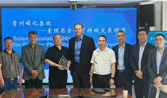Solenis recognized Guizhou Phosphate Chemical Group with a 2022 Solenis Sustainability Award for an antiscalant project that led to a reduction in CO<sub>2</sub> emissions of 3,000 tons per year.